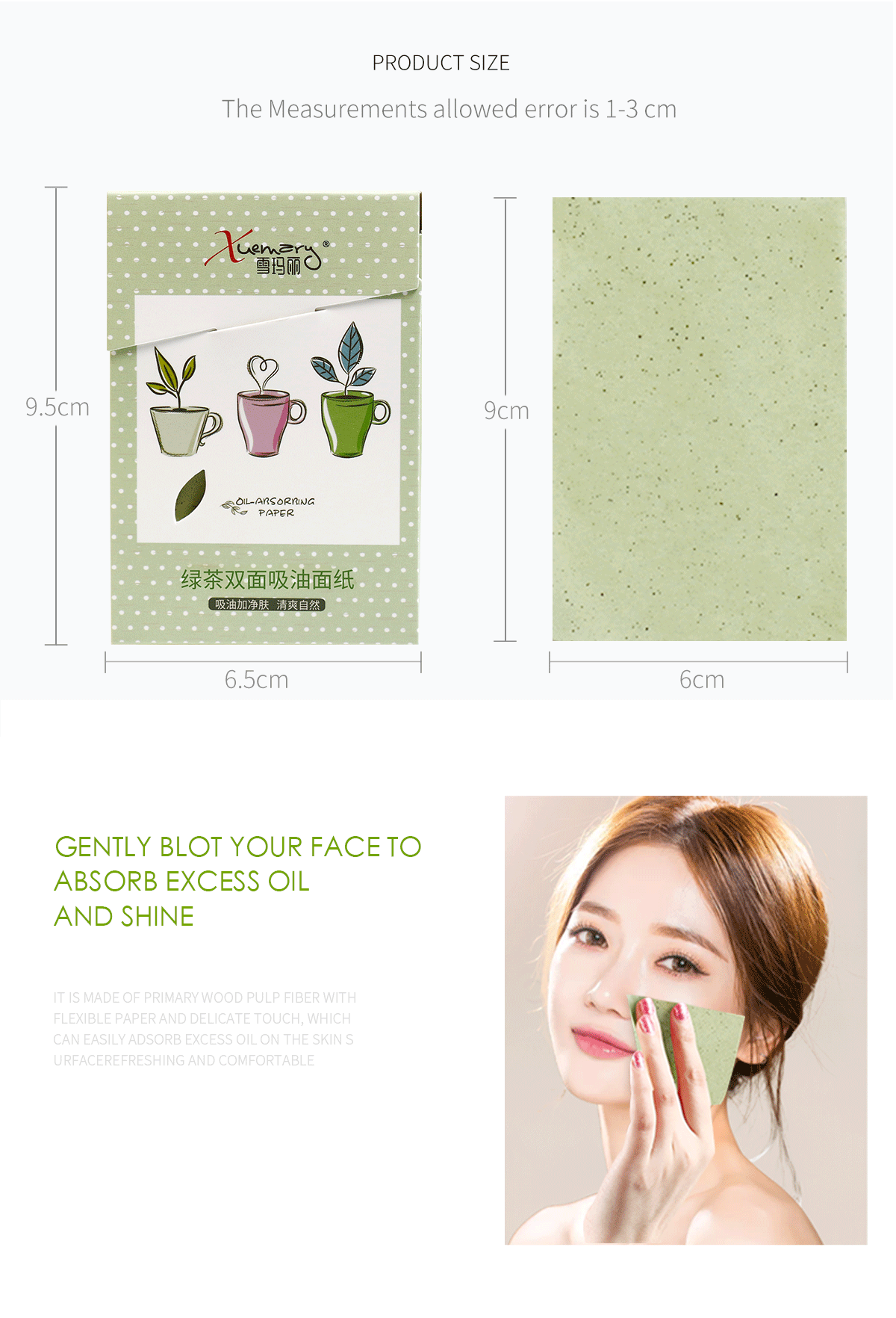 Material: Green tea/Jasmine/Dandelion/Flax blue